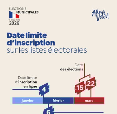 Le compte à rebours est lancé ! Il reste seulement 100 jours avant le premier tour des élections municipales, qui se tiendra le dimanche 15 mars 2026. Votre voix est essentielle pour dessiner l'avenir de notre commune pour les six prochaines années !